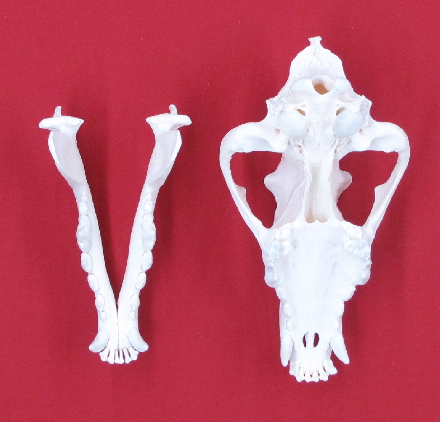 Lot # 5291-9845AlaskaXXXXL 11.25" long professionally BEETLE CLEANED #1 select quality. Mature male. Huge animal. Exceptionally nice skull. Beautiful. Probably nicest wolf skull we have ever offered $750.00 /eaF-7 |